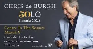 Legendary singer songwriter Chris de Burgh celebrates his 50th career anniversary with his new SOLO Canadian tour. He is playing locally at Centre in the Square on March 9, 2026. Tickets